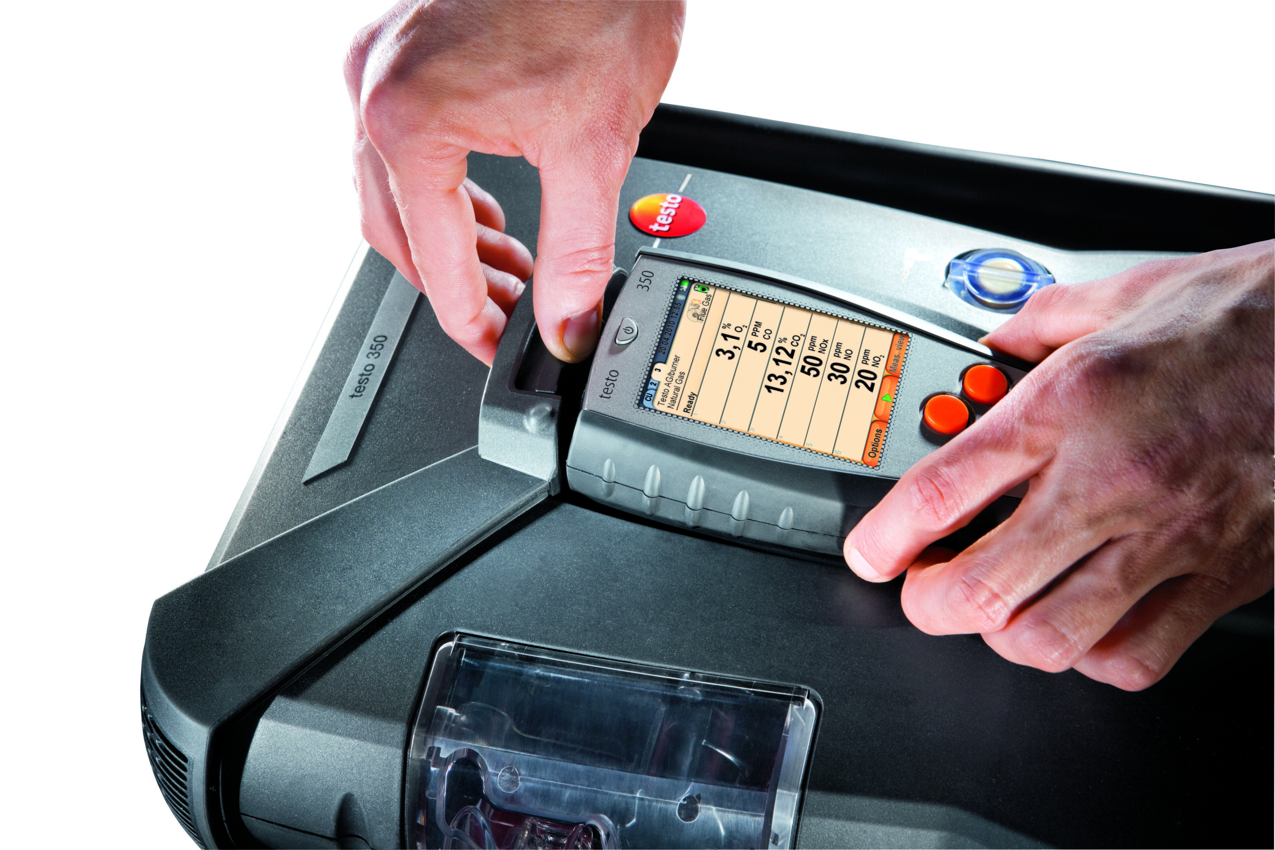 The purpose of using a portable flue gas analyzer is to test the environmentally sound operation of combustion systems and optimum utilisation of the system. This means that a combustion system can be adjusted to its optimum working range to enable it to meet or come within stipulated emission limit values, while achieving a maximum level of efficiency in terms of combustion. The accurate flue gas analyzer testo 350, suited to tough practical conditions, is not only used for commissioning purposes, but also for repeat gas analyses during operation.